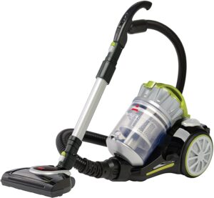 This is a great price entry-level canister vacuum with an easy-to-remove dust bag. Limited on features, it only has a single speed, but with the air-bypass switch on the handle, you can limit suction for vacuuming on doormats and other suck-upable items.